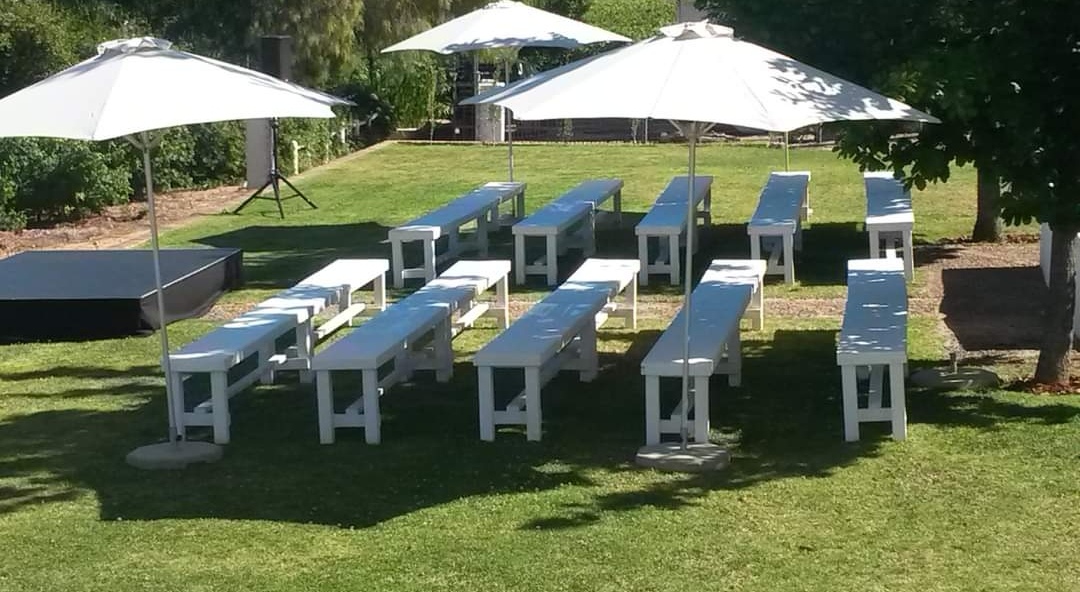 At Outdoor Affair, we believe that the right setting can transform any occasion into something truly unforgettable — and we're here to make that happen with our tables, benches, and umbrellas for hire.